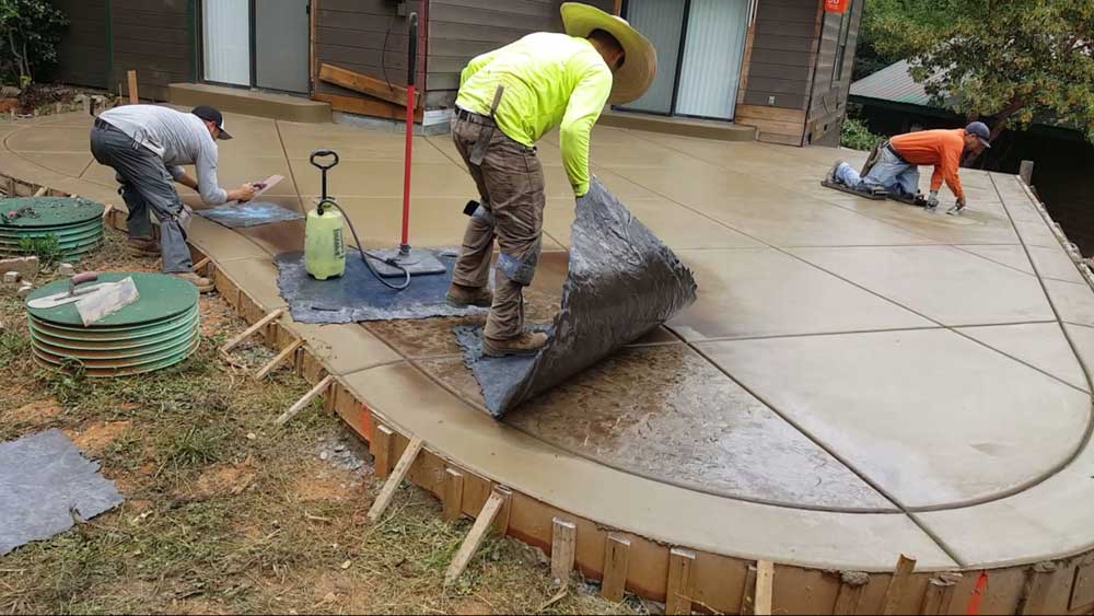Stamped concrete involves pressing molds into freshly poured concrete to create patterns that mimic natural materials like stone, brick, or wood.
