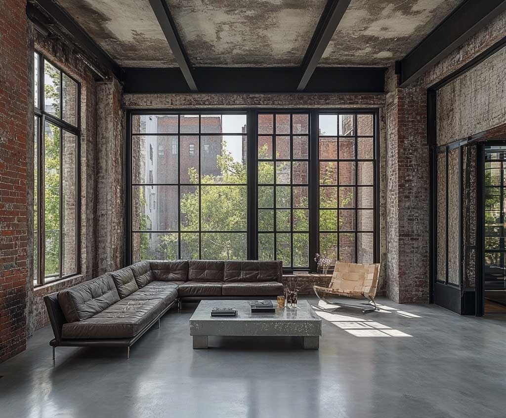 2. Industrial Modern with Steel and Concrete